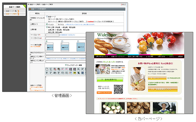 WideShop標準のTOPページを使用せずに、カバーページ(自由ページ機能で作成したページ)をTOP(index.html)に使用できる機能です。